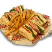 Smoked Turkey and ham, served with crispy bacon, cheese ,lettuce, tomato and mayonnaise