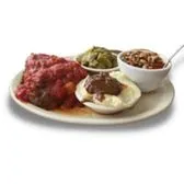 Norma's Cafe scratch-made, Texas-style meatloaf covered with savory tomato sauce. Your mother will want this recipe. Served with your choice of three fresh made veggies and Norma's Cafe's homemade rolls and cornbread.