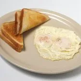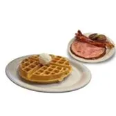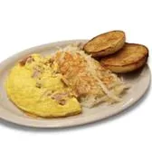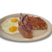 Two fresh eggs, any style, with your choice of ham, bacon or sausage. Served with hash browns or grits, and homemade biscuits or toast