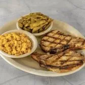 Two mouth watering, center but boneless pork chops, grilled or fried. Served with your choice of two fresh made veggies and Norma's Café homemade rolls and cornbread.
