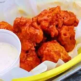 tempura flash-fried cauliflower tossed in spicy Buffalo sauce & served with ranch for dipping (GF) [Contains: Dairy]