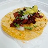 Small corn tortilla, with choice of meat, onions and cilantro.