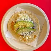 Vegetarian Option Flour Tortilla, Refried Black beans, Avocado Slices, Queso Fresco & Sesame Seeds