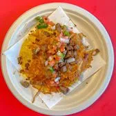 Corn Tortilla, Carne Asada, Cheese w/chorizo & Pico de Gallo