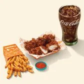 6 Piece Boneless Wings marinated In Louisiana spices and fried to perfection for unmatched flavor. Made with all-white meat, these wings are available in a range of spice levels and delectable flavors. Includes 1 dipping sauce.. Served with 1 regular side and 1 drink.