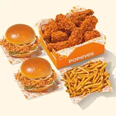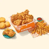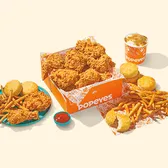 6 wings (bone-in or boneless), 3 tenders, 2 sides, and 2 biscuits. A hearty meal for two to enjoy together.