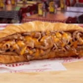 A combination of our famous Italian beef layered with cheddar cheese and served on a toasted croissant. Best served with home-cooked sweet peppers and/or hot giardiniera peppers for an extra charge.