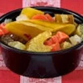 Our famous, homemade, Italian beef is slow-roasted for four hours, thinly sliced, and served in a bowl. Best served topped with Mozzarella (pictured) or Cheddar cheese, and your choice of sweet and/or hot giardiniera peppers (both pictured). * Cheese and peppers are an additional charge.