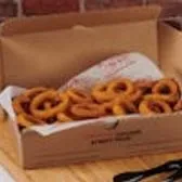 Deep fried, made-to-order Onion Rings, served hot in a container that can be heated to re-crisp the onion rings. Serves 5.