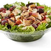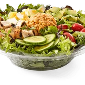 All-natural grilled chicken breast, fresh-sliced avocado, hummus, hard-boiled egg, cucumber, tomatoes, served on a bed of field greens, with fat free vinaigrette