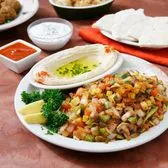 choice of 2 protiens; chicken, beef or lamb shawarma with onions & tomatoes served on vermicelli rice, with tzatziki sauce pita and your choice of side