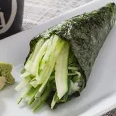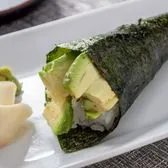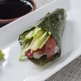 Krab† mix, cucumber, and avocado rolled into a cone shape resembling an ice cream cone.