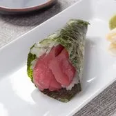 Fresh tuna mixed with spicy mayo sauce, combined with cucumber and rolled into a cone shape resembling an ice cream cone.