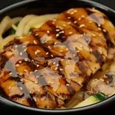 Grilled chicken served over rice with sauteed zucchini, mushrooms, and onions, topped with teriyaki sauce