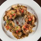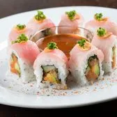 Spicy yellowtail mix, cucumber, avocado, jalapeño and cilantro; topped with yellowtail, green onion, crispy garlic, and togarashi. Served with chili ponzu sauce