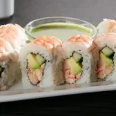 Lobster krab† mix, cucumber and avocado; topped with shrimp; served with Asian pesto sauce