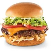 Crush on this: Brown-sugar-glazed patty, hardwood-smoked bacon, Whiskey River® BBQ Sauce, cheddar, caramelized onion, lettuce and mayo.