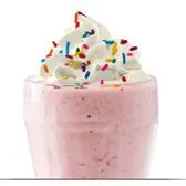 Creamy soft-serve blended with milk and strawberry. Garnished with whipped cream and rainbow sprinkles.