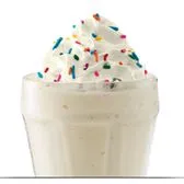 Creamy soft-serve blended with milk and vanilla syrup. Garnished with whipped cream and rainbow sprinkles.