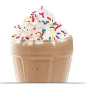 Creamy soft-serve blended with milk and chocolate syrup. Garnished with whipped cream and rainbow sprinkles.
