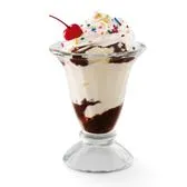 Two layers of Hershey’s® chocolate syrup, soft serve, whipped cream, rainbow sprinkles and a cherry on top.