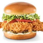 Simply perfect! This new, improved recipe features handbreaded chicken breast fried golden brown and served with pickles, lettuce, tomato and mayo.