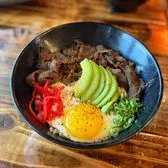 Thinly sliced marinated beef, slowly cooked for over 16 hours in a house made “Gyudon” sauce. Served over steamed rice, and topped with kewpie, green onion, sunny side egg, avocado, pickled Shona ginger, and togarashi.