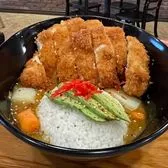 Panko fried chicken breast served with golden curry, chopped carrots, potato, and gohan. Topped with pickled ginger, avocado and furikake.