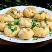 Dahi Puri is a popular Indian street food and snack known for its delightful combination of flavors and contrasting textures. This dish is a harmonious blend of sweet, tangy, and savory elements, making it a favorite among food enthusiasts seeking a taste explosion in a single bite. ***Nut Free***