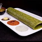 Spinach dosa is a nutritious twist on traditional South Indian dosa, incorporating finely chopped spinach into the batter. It boasts a vibrant green hue and is served crispy. ***Nut Free***