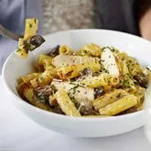 roasted chicken, caramelized onions, mushrooms, marsala cream sauce, rigatoni
