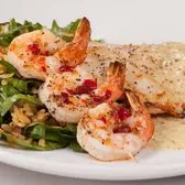 grilled chicken breast, mustard cream sauce, calabrian honey pepper glazed shrimp spiedini, spinach sun-dried tomato orzo