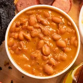 Rudy's Beans are spicy pinto beans cooked with chopped brisket, Rudy’s Original BBQ "Sause," and Rudy’s Rub.