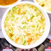 Chopped green cabbage, and carrots, mixed with a sweet creamy slaw dressing.