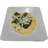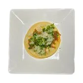 Un taco con proteina, tortilla, cilantro y cebolla. (One taco with your choice of meat & tortilla: Cilantro & onions.)