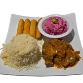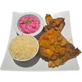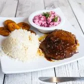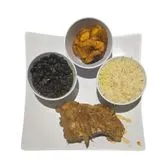 Proteina, arroz y dos acompañantes. (Protein, rice, & two sides.)