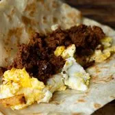 Buttery flour tortilla, dreamy eggs, and slowly braised beef with herbs.