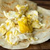 Buttery flour tortilla, dreamy eggs, and creamy potatoes.