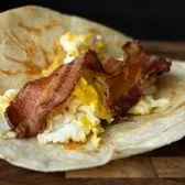 Buttery flour tortilla, dreamy eggs, and crispy bacon.