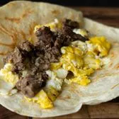 Buttery flour tortilla, dreamy eggs, and succulent grilled flank steak.