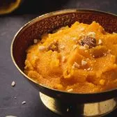 Popular Indian dessert made from grated carrots cooked with milk, sugar, ghee, and flavored with cardamom, often garnished with nuts and raisins.