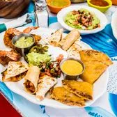 Santa Rita shrimp, nachos, quesadillas supremo and chicken flautas; with pico de gallo, guacamole, chile con queso and lime avocado sauce