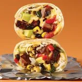 That old school flava. Grilled chicken, carne asada steak or vegetarian, flour tortilla, fresh avocado, chipotle crema, jack cheese, white rice, black beans, roasted corn, sautéed peppers & onions.