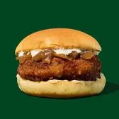 Crisp-fried portobello mushroom filled with melted Muenster and cheddar cheeses, topped with caramelized onions and roasted garlic parmesan aioli on a toasted potato bun. (Contains: Milk, Egg, Wheat, Soy, Sesame, Gluten)