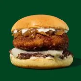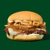 A made-to-order quarter-pound* per patty of 100% Angus beef topped with Gruyere cheese, caramelized onions, crispy sweet onions, and roasted garlic parmesan aioli on a toasted potato bun. (Contains: Milk, Egg, Wheat, Soy, Sesame, Gluten)