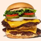 A made-to-order quarter pound* per patty of 100% Angus beef with American cheese, topped with a 'Shroom Burger with lettuce, tomato, and ShackSauce on a toasted potato bun (Contains: Milk, Egg, Wheat, Soy, Sesame) *Approximate weight per patty is 4oz before cooking
