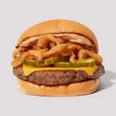 Angus beef cheeseburger with applewood-smoked bacon, chopped cherry peppers, and ShackSauce on a toasted potato bun (Contains: Milk, Egg, Wheat, Soy, Sesame)