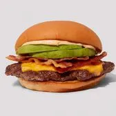 Angus beef cheeseburger topped with freshly sliced avocado, applewood-smoked bacon, and ShackSauce on a toasted potato bun (Contains: Milk, Egg, Wheat, Soy, Sesame)