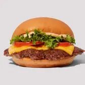 Angus beef cheeseburger with lettuce, tomato, and ShackSauce on a toasted potato bun (Contains: Milk, Egg, Wheat, Soy, Sesame)