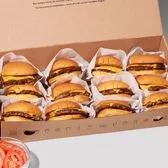 The burger that started it all. Made with 100% Angus beef and topped with cheese, lettuce, tomato, and ShackSauce on a toasted potato bun. No modifications available. (serves 12) An order this large deserves a ‘lil extra love. Please allow for more cook + prep time.
